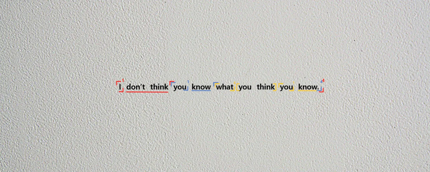 나는 네가 안다고 생각하는 것을 알고 있다고 생각지 않아.
